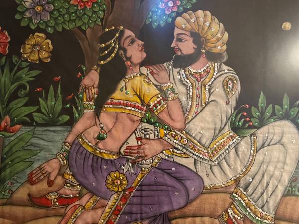 Beautiful, framed, embellished Indian painting on silk