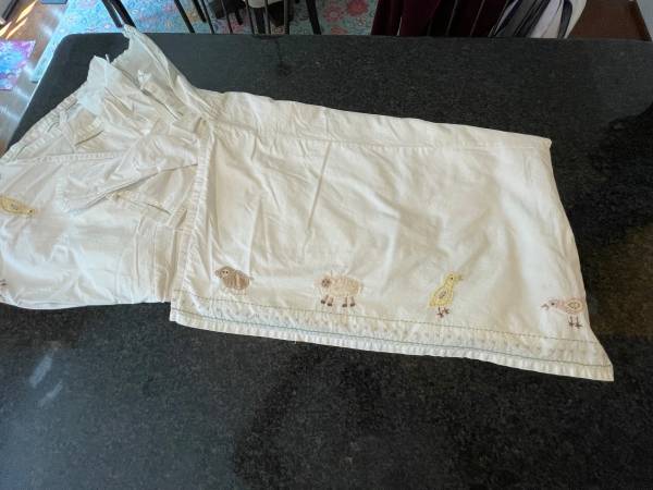 Pottery Barn Kids’ “Cottontail and Friends” crib skirt. Very cute. I’m separately selling a two window curtain/valance set to match if interested. Curtains and valance can be seen in the last...