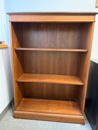 6 foot Wooden Office Desk with side extensions. Matching Bookcase