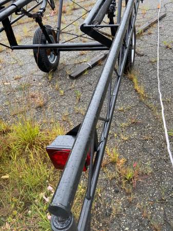 2. Pontoon bunk trailer, galvanized, BIG wheels in good condition excellent for over the road long hauls, getting new lights, nose to nose of pontoon measuring 72” BRAKES!!beautiful in excellent condition