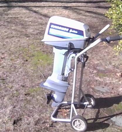 Reduccd price! This is a short shaft 2 stroke outboard. for 15" transom) Model E6SLCQ. Oil mix at 50 to 1. Motor starts very easily and runs great at all speeds. My lake is iced up solid so cannot do an on-water demo, but if you are interested, please visit to see how well it runs. Cash only please.