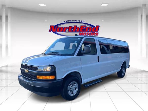15-Passenger Seating (2-3-3-3-4 Seating Config), 16" x 6.5" Steel Wheels, 2 Speakers, ABS brakes, AM/FM Stereo w/MP3 Player, Dual front impact airbags, Dual front side impact airbags, Electric Rear-Window Defogger, Electronic Stability Control, Emergency communication system: OnStar and Chevrolet connected services capable, Fully automatic headlights, Heated door mirrors, Occupant sensing airbag, Overhead airbag, Power windows, Preferred Equipment Group 1LS, Rear air conditioning, Remote Keyless Entry, Sliding Passenger-Side Door, Speed control, Theft Alarm Notification, Traction control.
