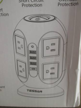 Tessan Tower Power Surge Power Strip 8 AC Ports 4 USB JW401 NEW IN BOX