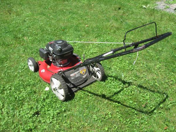 Push lawnmower Honda with 21" cutting path. Clean carburetor, new spark plug and air filter, new pull start mechanism and rope, blade sharpened. Large rear wheels allow to roll over any obstacles. Used as a mulcher only and comes with a new mulching blade. No rust and no problems.