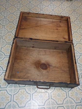 Old durable wooden case for storage and transport of selected items. 22" wide x 15" deep x 8" high. excellent condition with little past use. Best Offer