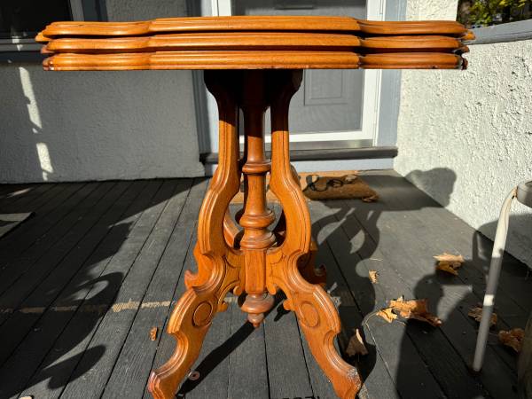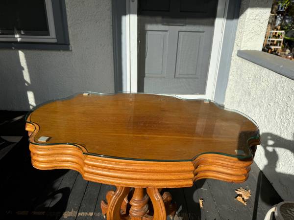 Victorian Turtle Top Table with customized glass top. In excellent shape with normal wearing. Table top 30”x20”; height 28”.