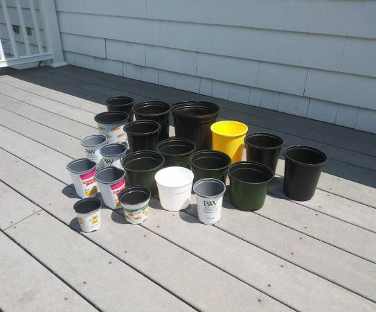 20-total plastic pots Measuring sizes from 3.5"- 9"inches All with drainage holes Perfect for all your planting needs $5.00 cash for everything pictured Call or text Thank you