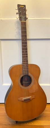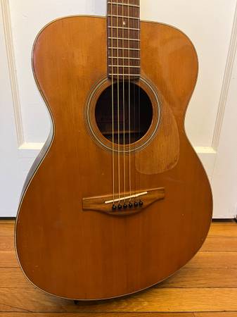 Vintage 1970s Yamaha FG-150 acoustic guitar, made in Japan. Will need some work, the action is high. Has replaced tuners, missing the pickguard. No cracks, no bridge lift, no loose braces. Sold as is, $200 firm ($260 with hardshell case included), local pickup only, no trades.