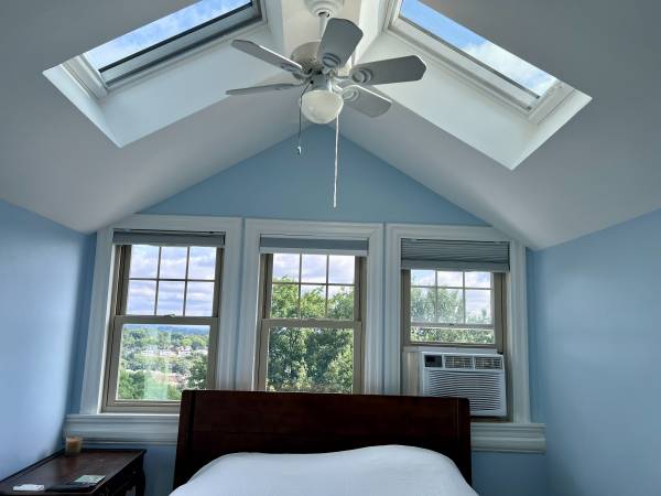 We are renting a one bedroom, small full bath & large walk-in closet on the third floor of our 4 bedroom condo in Chestnut Hill, Newton. Furnished; new queen bed; Tempur Pedic mattress; large flatscreen TV; cable, DVR, WiFi included; 3/4 fridge; Common access, shared kitchen, washer and dryer on second floor. Storage available in attic and basement.