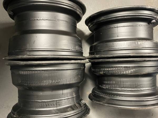 These were removed at the dealer from a Rincon 680. Stored in a basement since. Did have tires on them, so may have a scratch or chip. They are dusty and also come with center caps.