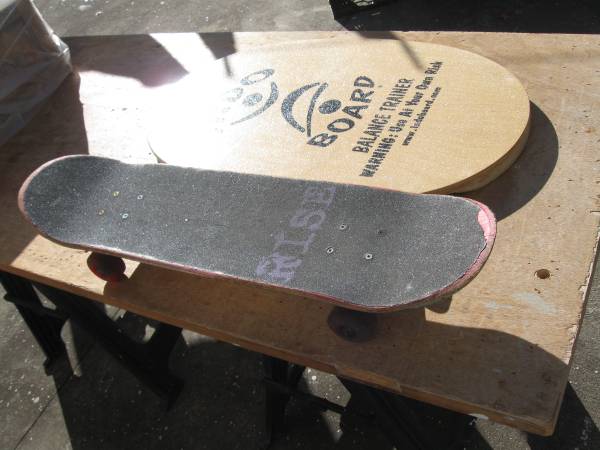 Brand new balance trainer Indo board comes with a new rubber mat in a shoulder bag. Also has the balancing cylinder: complete package and ready to use/ balance training. Adding a used skateboard to...