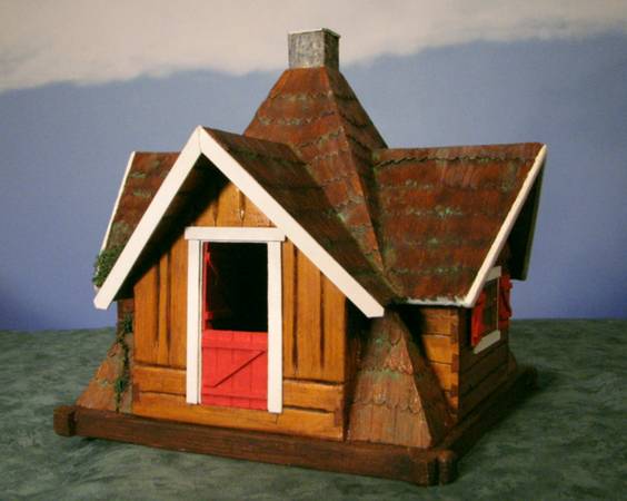 I don’t know the original proposed use for this miniature structure, other than for a model train layout. And although it resembles one, it definitely was not intended for use as a bird house because it is much too delicate and wouldn’t survive a single rain or windstorm.