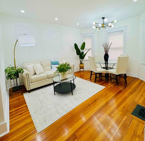 Welcome to this bright, fully renovated 3-bedroom, 1-bath apartment offering the perfect blend of modern comfort and classic charm. This spacious home features gleaming hardwood floors, in-unit laundry, and a beautifully updated kitchen with premium finishes move-in ready and designed for today's lifestyle.