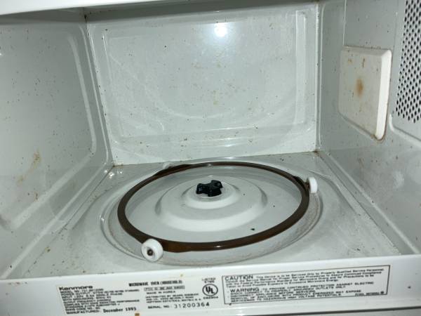 White Kenmore microwave that I don't need in my new apt. The glass piece is wrapped that goes inside.
