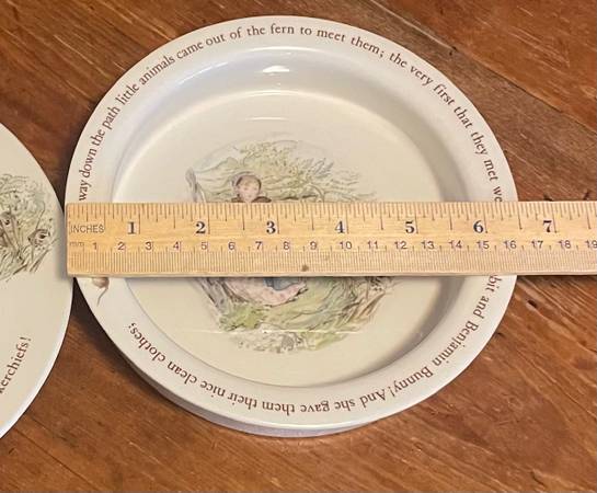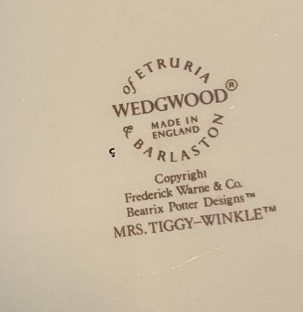 Beatrix Potter “Mrs. Tiggy Winkle” Wedgwood baby plate and bowl. It was made before 1988, when the pattern was discontinued. Excellent condition.