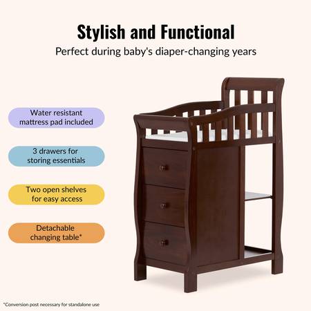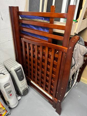 Dream-On-Me Jayden model ($360). We had it most recently used as a bed for our 4 year old, but she has outgrown it. Some smaller scratches, generally in good condition. Furniture protectors on all feet for the bed. Made with a nontoxic finish.