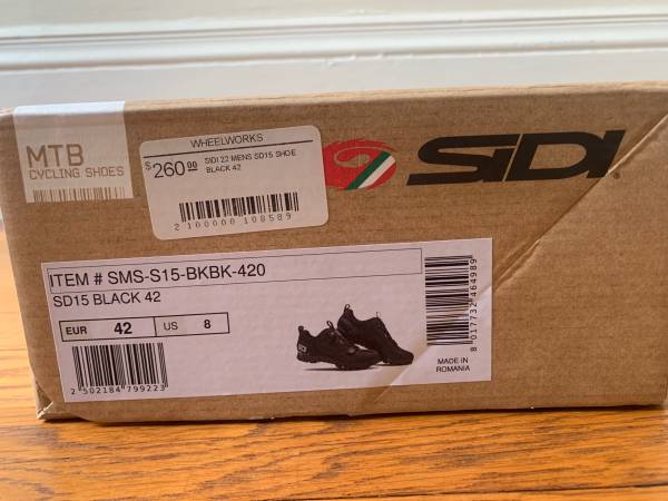 Sidi Item# SMS-S15-BkBK-420 SD15 Black size 42 cycling shoes. After using this pair of shoes for a month I came to the realization that I bought the wrong size shoe and that is why I'm selling this pair. I have since purchased a larger size of the very same shoes and they are fantastic!