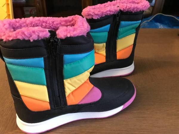A multicolored, quilted boot provides superior protection from the wet & cold while the flexible sole offers excellent traction on icy surfaces.