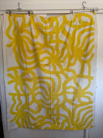 1969 Maija Isola design, Yellow, Red and Blue 100% cotton, made in Finland. 2 pieces 52” W x 102” L and 116” W x 46” L. 1970 Maija Isols design “Linnunrata” (6 circles) Navy, Gray, Black and White...