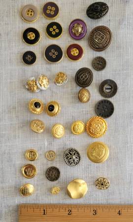 43 decorative buttons Goldstone, Silverstone, enamel, pearl $75 for all; $2 each