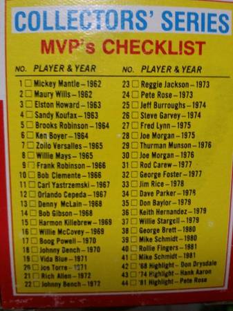 Topps Limited Edition 20th anniversary (1962-1982)AL & NL MVP's Baseball Collectors Series - Baseball Picture Cards - Collector's Series - 44 Cards