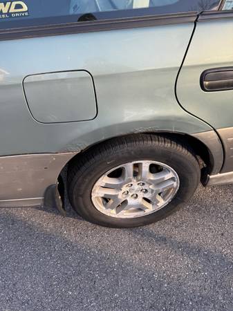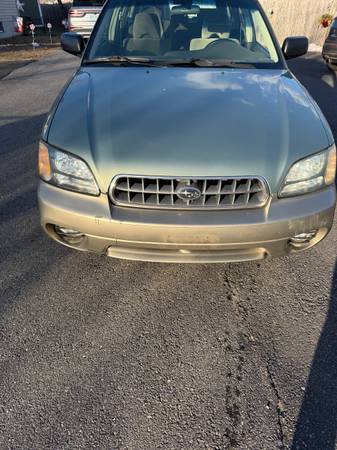 2004 SUBARU OUTBACK 4 CLY 5 SPD 119K MILES RUNS GREAT POWER WINDOW AND LOCKS TILT WHEEL AM / FM CD GOOD TIRERS HEAT WORKS GREAT INT IN GREAT SHAPE BODY HAS SOME RUST BUT NOT BAD AND SOME DINGS AND DENTS GREAT CAR FOR WORK IT 4X4 TO PLEASE SEE ALL PICTURES AND EMAIL OR CALL WITH ANY QUESTIONS THANKS BILL