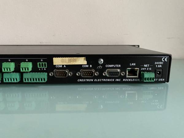 The 7x1 audio switcher provides balanced and unbalanced inputs for seven stereo audio sources. Built-in volume, bass, treble and mute controls and a 6-band graphic/parametric equalizer allow for precise adjustment and complete control of the audio signal. All audio settings and presets may be recalled and controlled from a Crestron touchpanel, keypad or other user interface. Crestron's Digital Media Tools (DMT) software provides the installer with a simple utility for setting input levels and equalization settings.