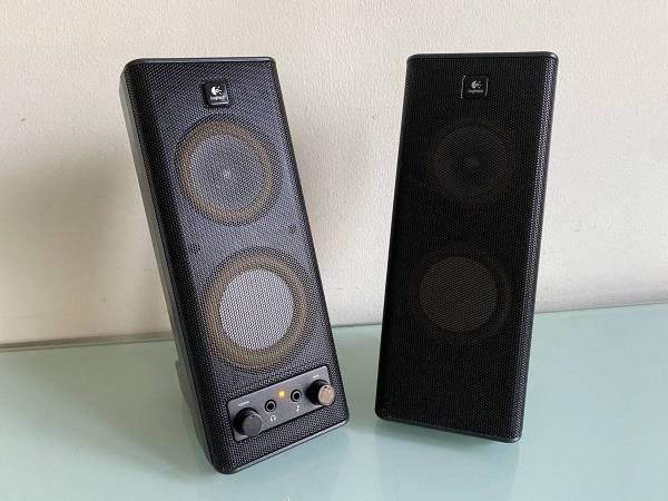 These powered, wired Logitech stereo speakers (they have a built-in amplifier) are in mint condition. You can plug a computer, iPhone, CD player, or any other device into them for superb sound.