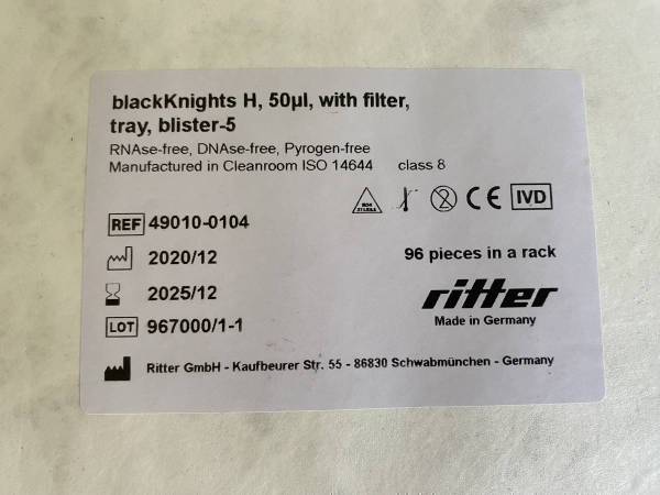 Ritter Black Knights H, 50µL, with Filter, Tray, Blister-5.