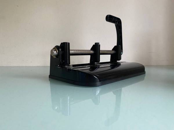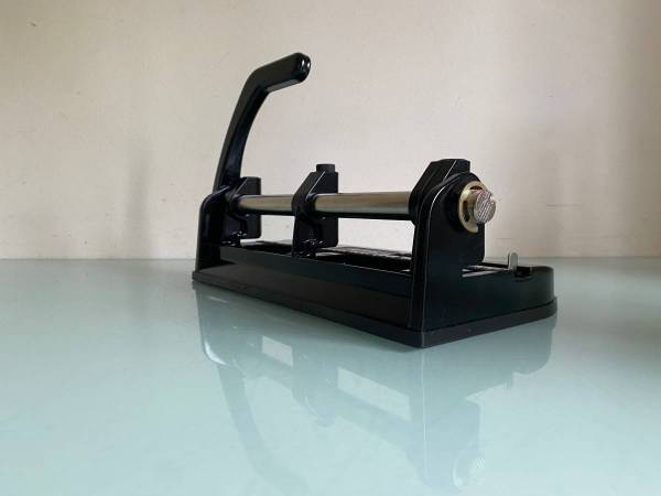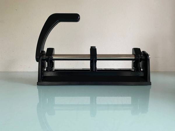 It has sharp cutting heads that deliver high punching performance. The lever handle design and sharp cutting punch heads easily create 2 to 7 holes through as many as 32 sheets at once. The durable metal punch features fully adjustable centers, adjustable margin depth and paper guide.