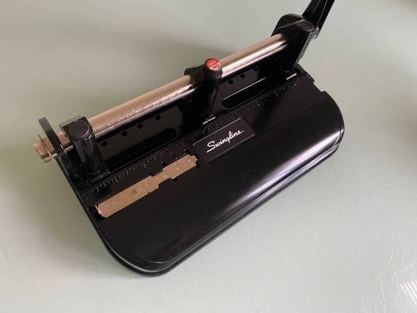 Swingline's lever handle design makes it super easy to manually punch high sheet counts.