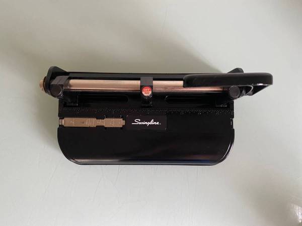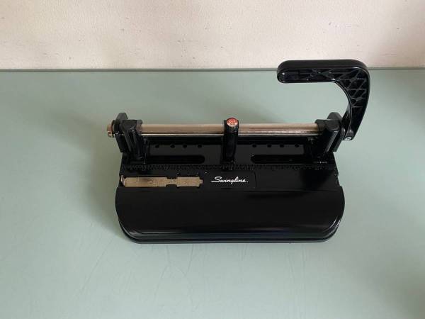 This Swingline Heavy Duty Desktop Adjustable Hole Punch is in like-new condition.