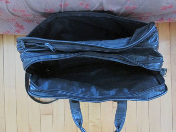 The other side has 4 zippered outer pockets, approx sizes in inches=