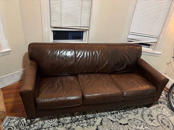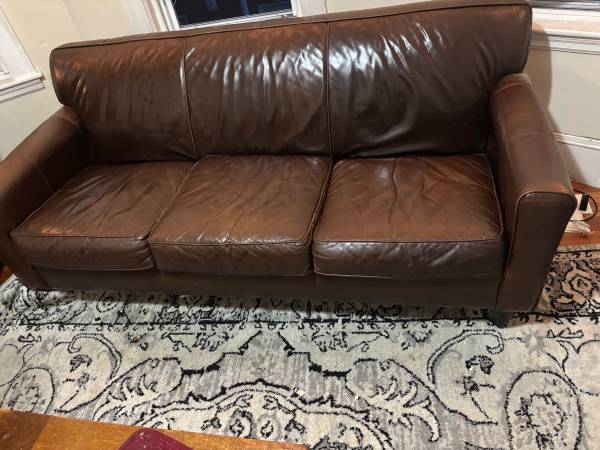 Nice Bahaus Leather couch with oil pull up protection and cleaner kit included Dimensions (L)80X(W)36X(H)28