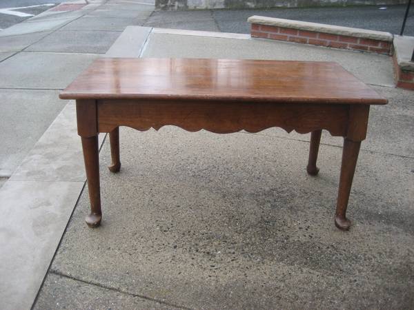 Stickley Solid Walnut Wood Coffee Table, Carved, Queen Anne Legs