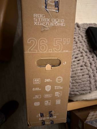 Still has plastic on the screen, has 28 hrs on the panel. Comes with original box and accessories. This is the 4th gen QD-OLED panel so it’s one of the first 27inch oled monitors in 4k resolution. Nice RGB lighting on back. Lots of features packed into it. $899 at Bestbuy