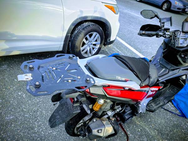 It has 5,000 miles, a new battery, new back tire, 6 inch Weuaste Apple/Android car play with gps navigation, cup and cellphone holder, 67 liter trunk, alarm, push button start, and a half shell helmet.