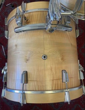The 14 x 10 floor tom was converted from a rack tom. 18 x 16 bass drum was a floor tom originally. A Ludwig Atlas rail tom mount was added for the 12 x 8 rack. Purchased in Berkeley CA a few years ago. Very cool and one of a kind custom kit. I am down sizing.