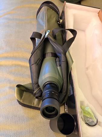 Gently used Celestron Regal M2 ED 80mm 20-60x spotting scope. Excellent large scope for birding, hunting, or wildlife watching. It has the original the stay-on protective case, lens caps, and original box for storage. I have added a new, more comfortable strap to the case. Originally purchased for $700 in 2019, currently $664 on Amazon.