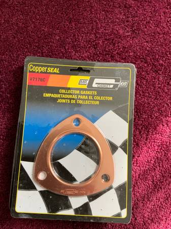 Have 2 sets of D port Pontiac header and manifold gaskets with header copper collector gasket see the picture for speciation. Note I have 2 sizes of collector gaskets #7176C 2-1/2 X 3-1/2 or #7177C...
