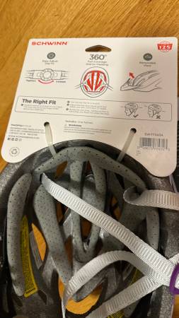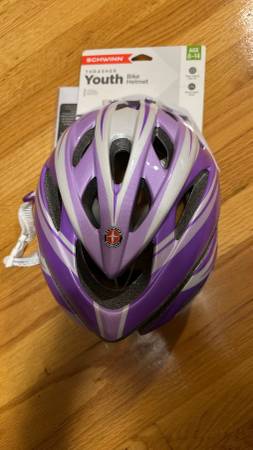 I’m selling a Schwinn youth bike helmet (Purple / White), brand new, never used. This model is known for its comfort, ventilation, and adjustable fit.