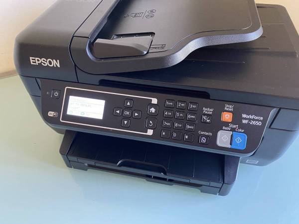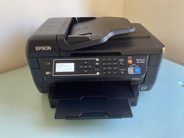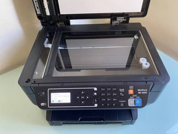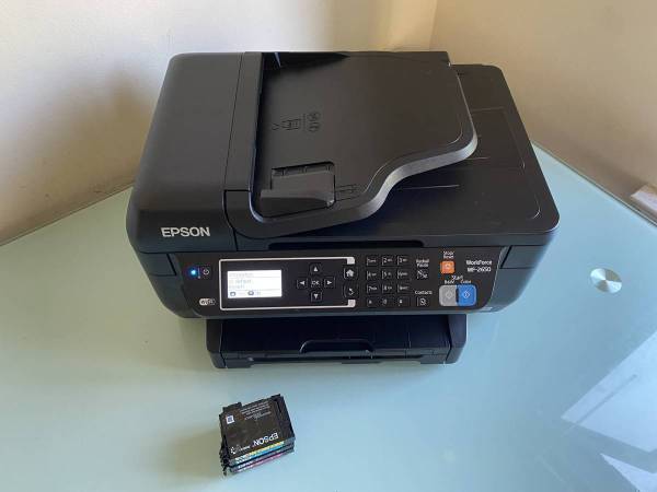 This Epson WorkForce WF-2650 All-In-One Wireless Color Printer is in like-new condition and perfect working order. A set of four brand new ink cartridges is included!