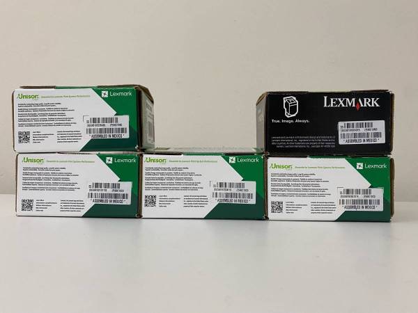 Selling a lot of 5 genuine Lexmark toner cartridges, all brand new and factory sealed. Ideal for small businesses, schools, or anyone maintaining Lexmark CX-series printers.