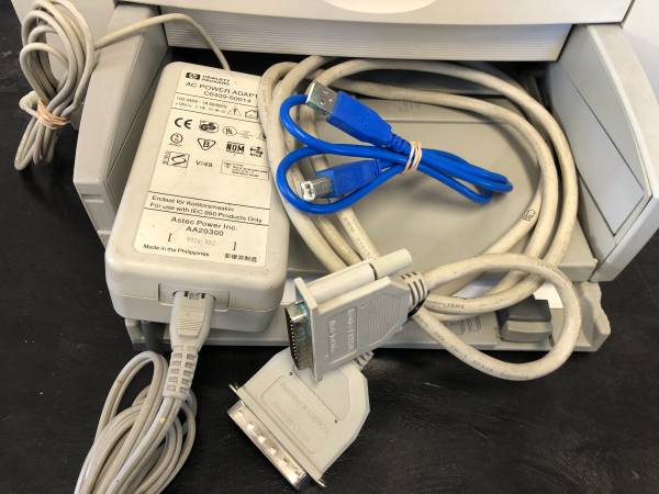 HP Deskjet 842C printer, Model C6414B. Used, in good working condition. Comes with power cord, USB printer cable and Parallel cable. Includes original printer driver/ software disc.