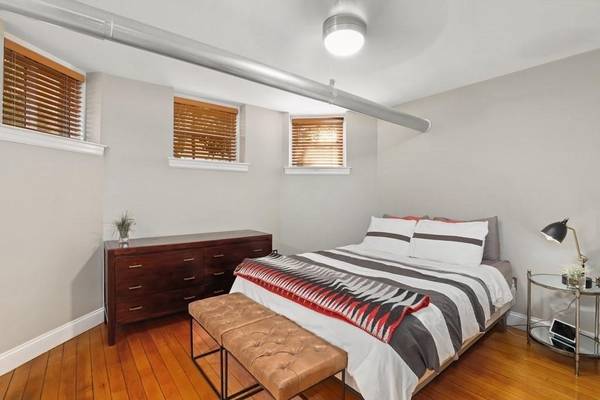 two-bedroom garden level condo features a private entrance, exposures on three sides, and is moments from vibrant Central Square. Enter the foyer, and notice the gleaming hardwood floors. Next, the newly renovated kitchen with gas cooking offers stainless steel appliances, quartz counters with leather textured finish, and plenty of bar seating perfect for entertaining. The living room features designer paint colors and built-in air conditioning. Next a custom designed bathroom offers all the luxuries: a stone-resin soaking tub, an Australian rain shower, floor to ceiling tile for a full wet-room experience, and two sinks. The two generously sized bedrooms have ceiling fans and plenty of closet space, one of the closets features a two-in-one steam washer-dryer for added convenience. Deeded storage and on-street parking complete this unique offering.