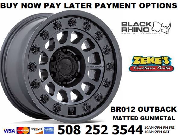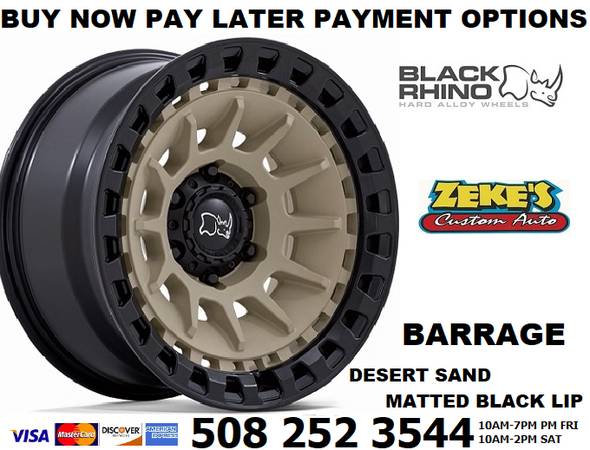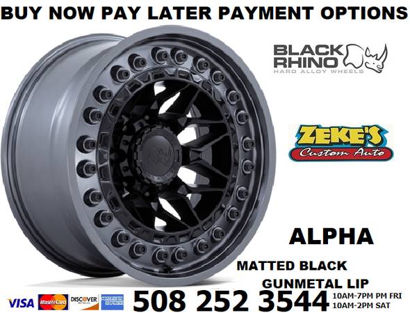 Black Rhino Alpha Matte Black w/ Sand Lip Wheels CALL NO TEXT OR NO EMAIL ZEKE'S CUSTOM WHEELS (RT44) 1988 WINTHROP ST NORTH DIGHTON,MA 02764 10AM-7PM PM MONDAY - FRIDAY 10AM-2PM SATURDAY Black...