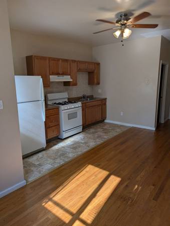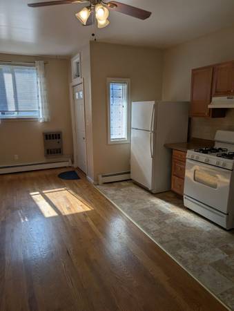 Rare. Heated apartment includes open concept kitchen dining living area. Full size refrigerator gas stove cabinets and stainless steel sink. Hardwood floors and high ceilings. Two large closets. One off street parking. No commercial vehicles. No pets. No smoking. Application required. Shown by appointment. First month 1600.00 Security deposit $1600.00