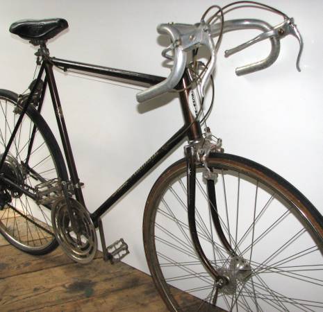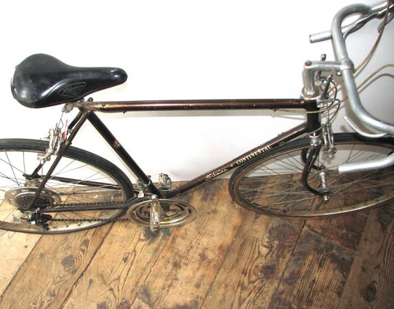 This bike has been in storage for years/decades unused. Mostly structurally sound visually, frame in very good vintage condition, except the forks are bent back. So, uncertain what impact that may have on the frame? Use caution if riding though best for repair/parts. Chain works but is rusty. Other mostly cosmetic wear such as minor scrapes, rust, etc. Brakes work but front needs to be tightened/adjusted to make contact. Tires appear to be the original with heavy wear from age and will need to be replaced. Gears don't appear to change so will need some adjustment/fix. Sold AS-IS for use, parts or repair.