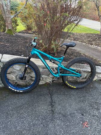 Salsa Bucksaw Full Suspension Fat Tire Bike. Dropper Post, Race Face pedals. Winter set up has Maxxis Minion FBF 26 x 4.8 tires (front) and Maxxis 26 x 4.0 (rear). Also included is a 29er wheel set for all year riding. Maxxis Minion DHF 29 x 2.6 (front) and Maxxis Minion DHR II 29 x 2.6 (rear) with Fatsno Pro4 Hope Hubs and Stans Flow MK3 rims (tubeless set up).