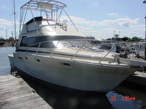This 34' Luhrs is powered by twin Crusader 7.4 engines with closed cooling. Starboard engine starts and runs normally. Port engine was running but over heating prior to exhaust elbow removed. Will need batteries. I don't know what works and what doesn't other than the engine report. The boat is abandon storage and must leave the facility at time of purchase. I have ownership paperwork. The boat is to tall to be transported over the road and will need to be towed to it's new location. Can be seen at Stoneham Boat Center 1147 Western Ave. Lynn, Ma. Phone calls only 781-581-five 999. If ad is up, It's still available.